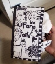 Let your baby physically feel and be attached to a fun story with this exquisite, unique storybook experience. Each page features recognizable animals with labels to allow your child to build his or her cognitive skills and animal recognition. The black-and-white nature of this storybook also aids in stimulating visual development.