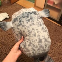 My boyfriend loves seals so when I saw this I just had to get it for him! It’s very soft, fluffy and squishable. However, based off the pictures I thought it was going to be a little bigger. Boyfriend still loves it though! He uses it as a travel pillow! Ha!